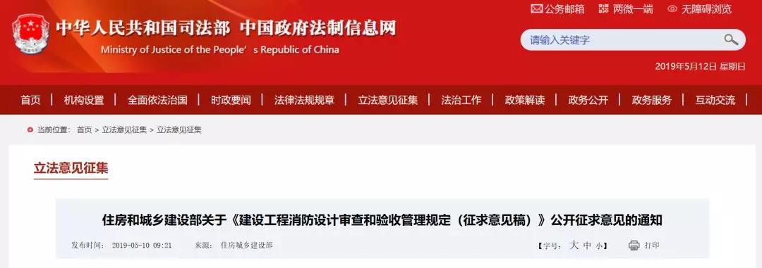 住房和城鄉(xiāng)建設(shè)部起草了《建設(shè)工程消防設(shè)計審查和驗收管理規(guī)定(征求意見稿)》,現(xiàn)向社會公開征求意見。公眾可以在2019年6月10日前,通過以下途徑和方式提出意見: